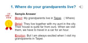 本課程主旨利用100題範例,利用iCrazy 特有之DDE教法,引導學生利用邏輯思考來更完整的回答問題,取得高分。每課50分鐘。
